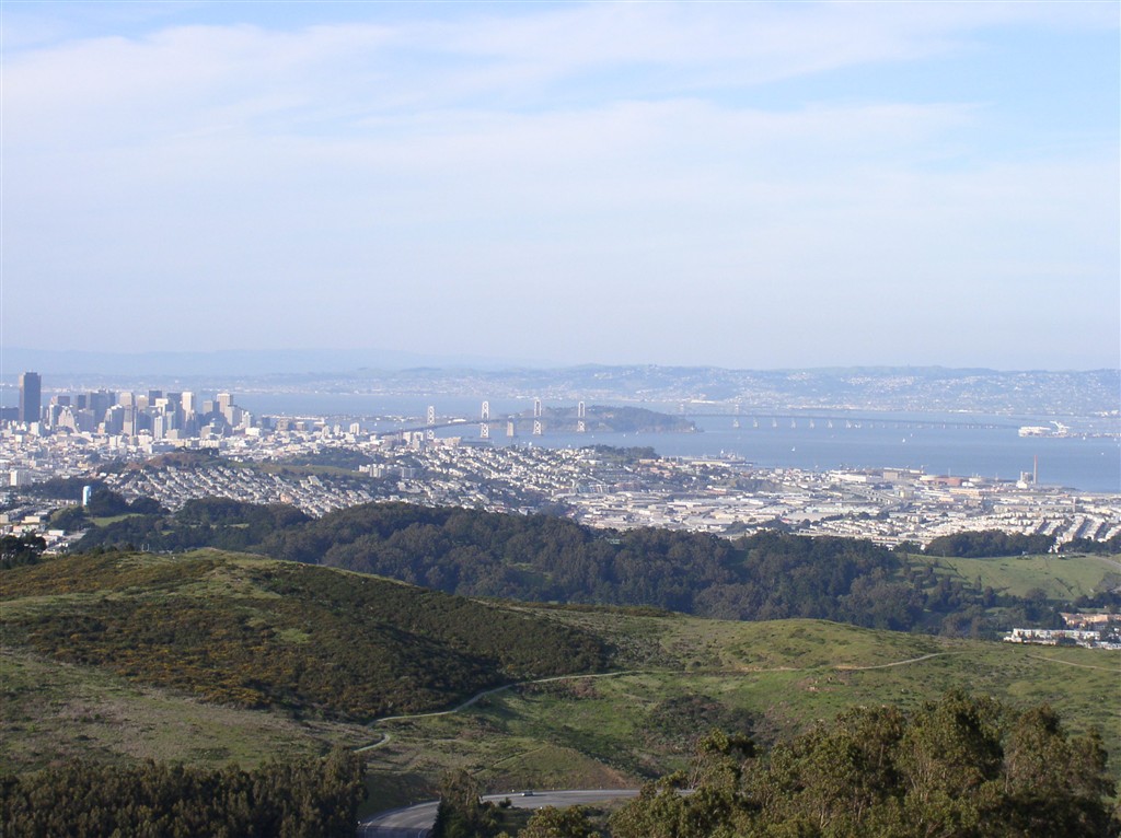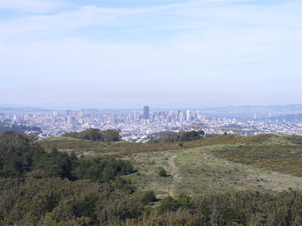 Горы там, конечно, не очень гористые 🙂 – высшая точка всего 400 метров. Эти горки отделяют Сан Франциско от остального полуострова и вид с них хороший, и залив виден, и океан, и город, и самолёты постоянно взлетают из SFO.